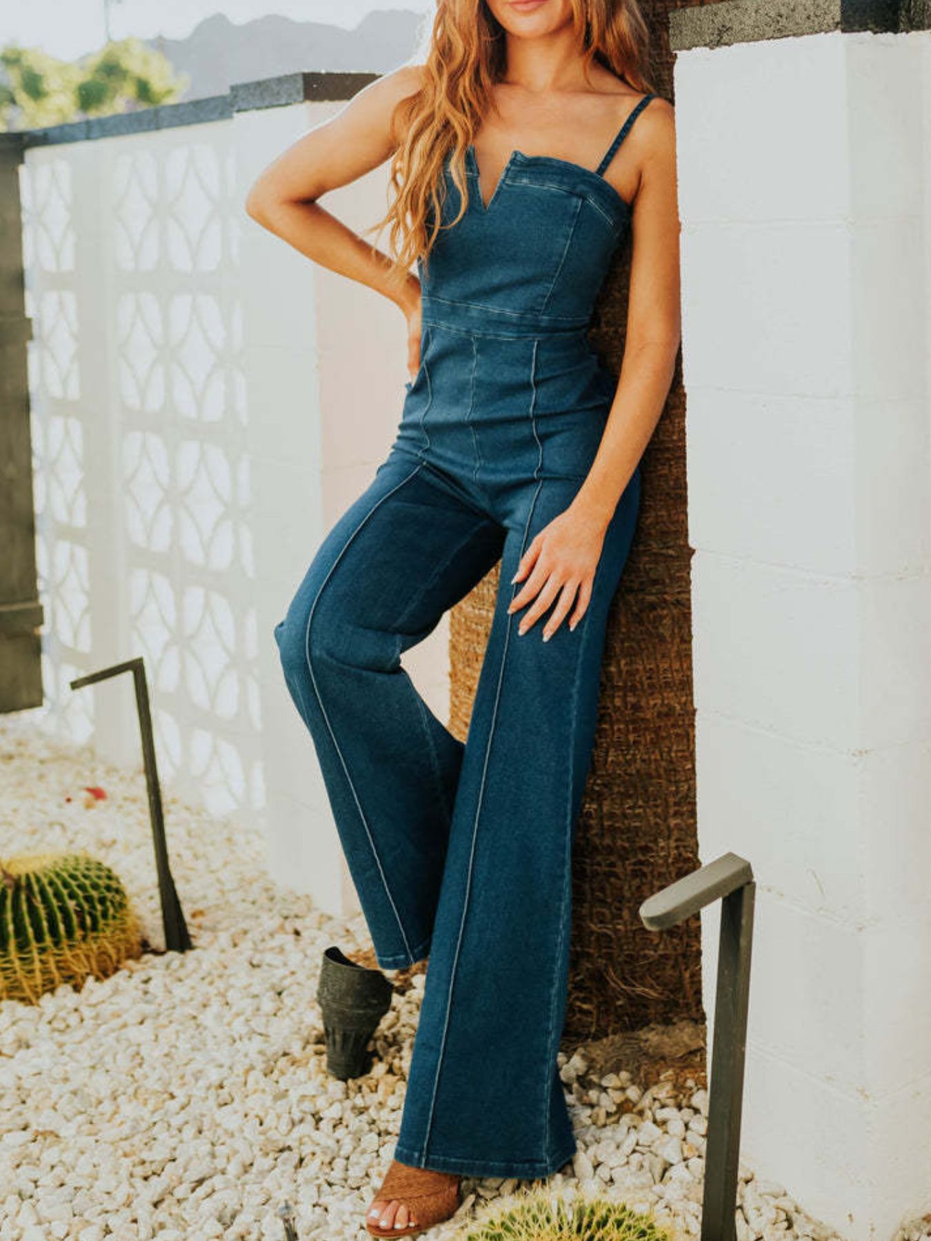 The spaghetti strap denim jumpsuit earns its place through restraint. The straps are thin and secure - they sit well on bare shoulders in summer and layer cleanly over a fitted bodysuit or ribbed tee when the temperature drops. The wide leg jumpsuit proportion does the rest: it elongates the silhouette, softens the overall line, and creates a look that feels far more deliberate than the effort required to put it together. For anyone who finds getting dressed in the morning genuinely exhausting, this is the answer.