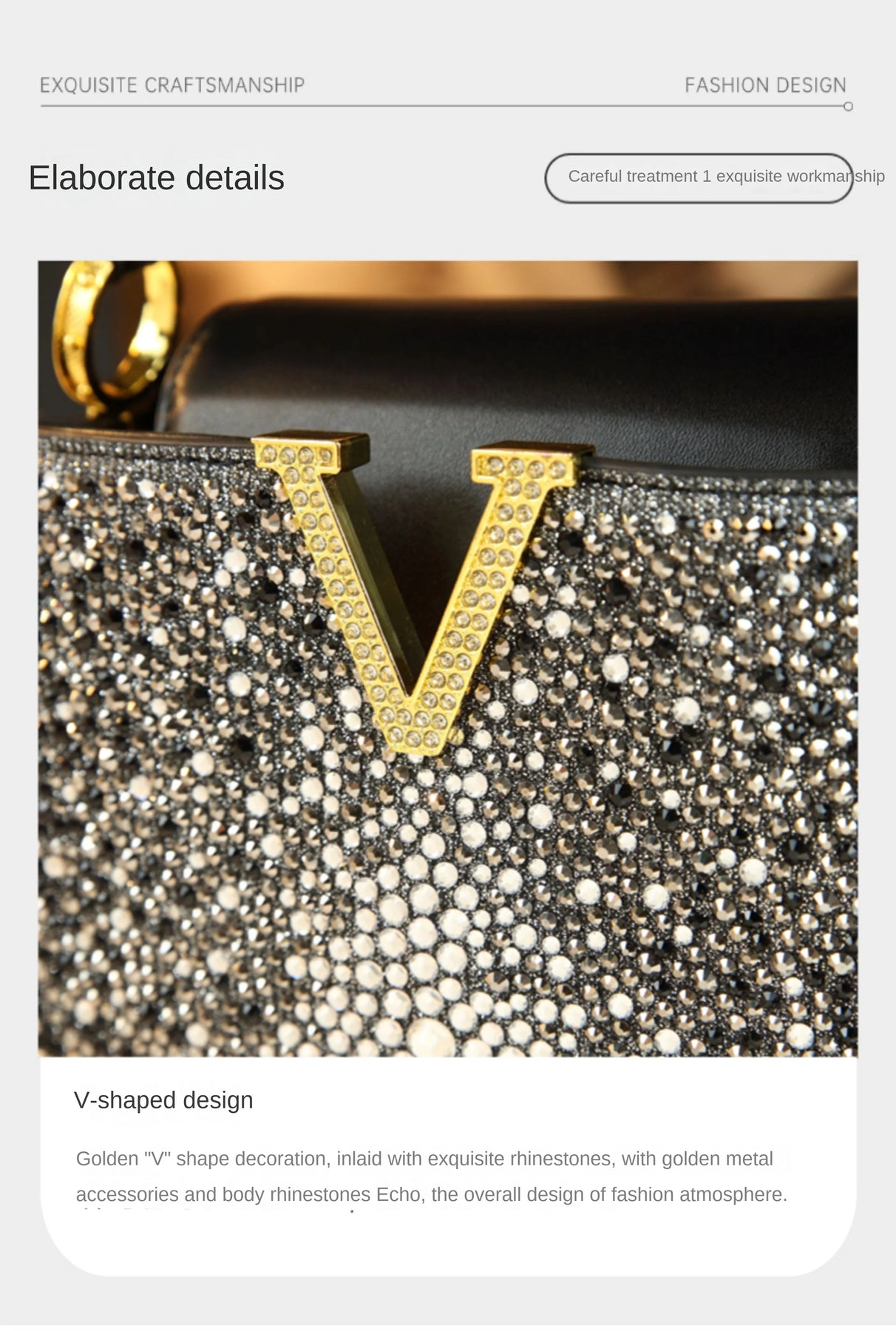 Gold V-accent leather crossbody – evening look