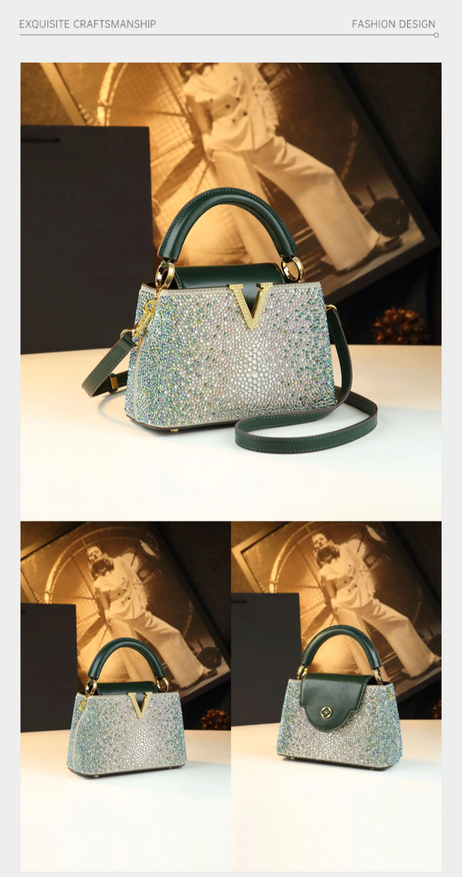 A compact genuine leather crossbody that upgrades daily outfits. V-accent hardware, soft handle, and a secure flap keep essentials tidy. Six colors. Light 0.8 kg. Sized for phone, cards, and keys. Ready for office to evening.