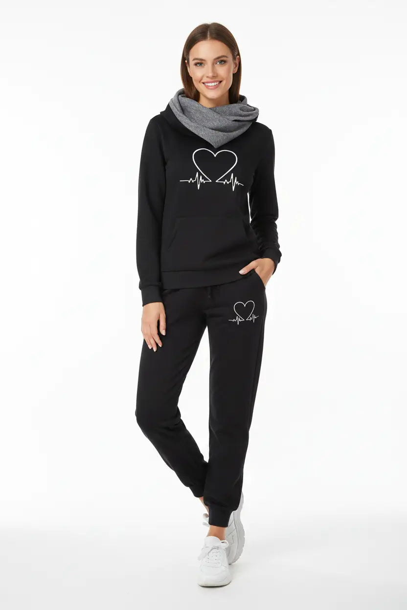 The love heart printed sports suit is the piece you’ll reach for when you want comfort that still feels considered. Cut from smooth polyester fibre, the fabric has a gentle weight and a soft hand feel that drapes beautifully without clinging. Long sleeves and a relaxed hood frame the face with quiet ease, while the heart print adds a subtle, personal touch that never shouts.