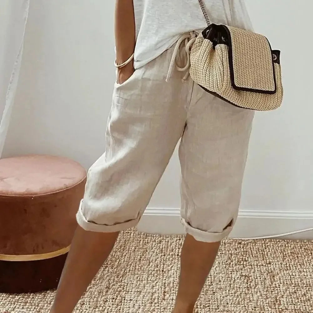 | 1XL–3XL | Linen–Cotton, slight stretch | Summer, travel, casual streetwear | High waist, lace-up, wide-leg, pockets, solid color |