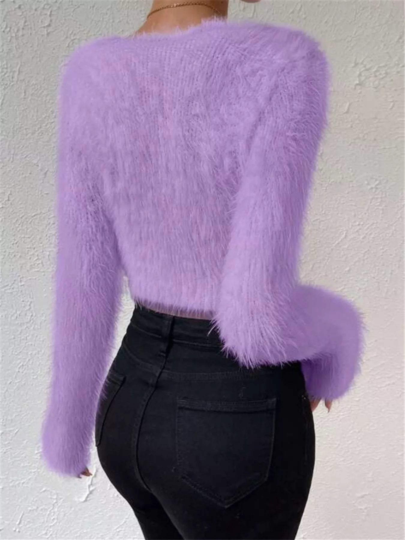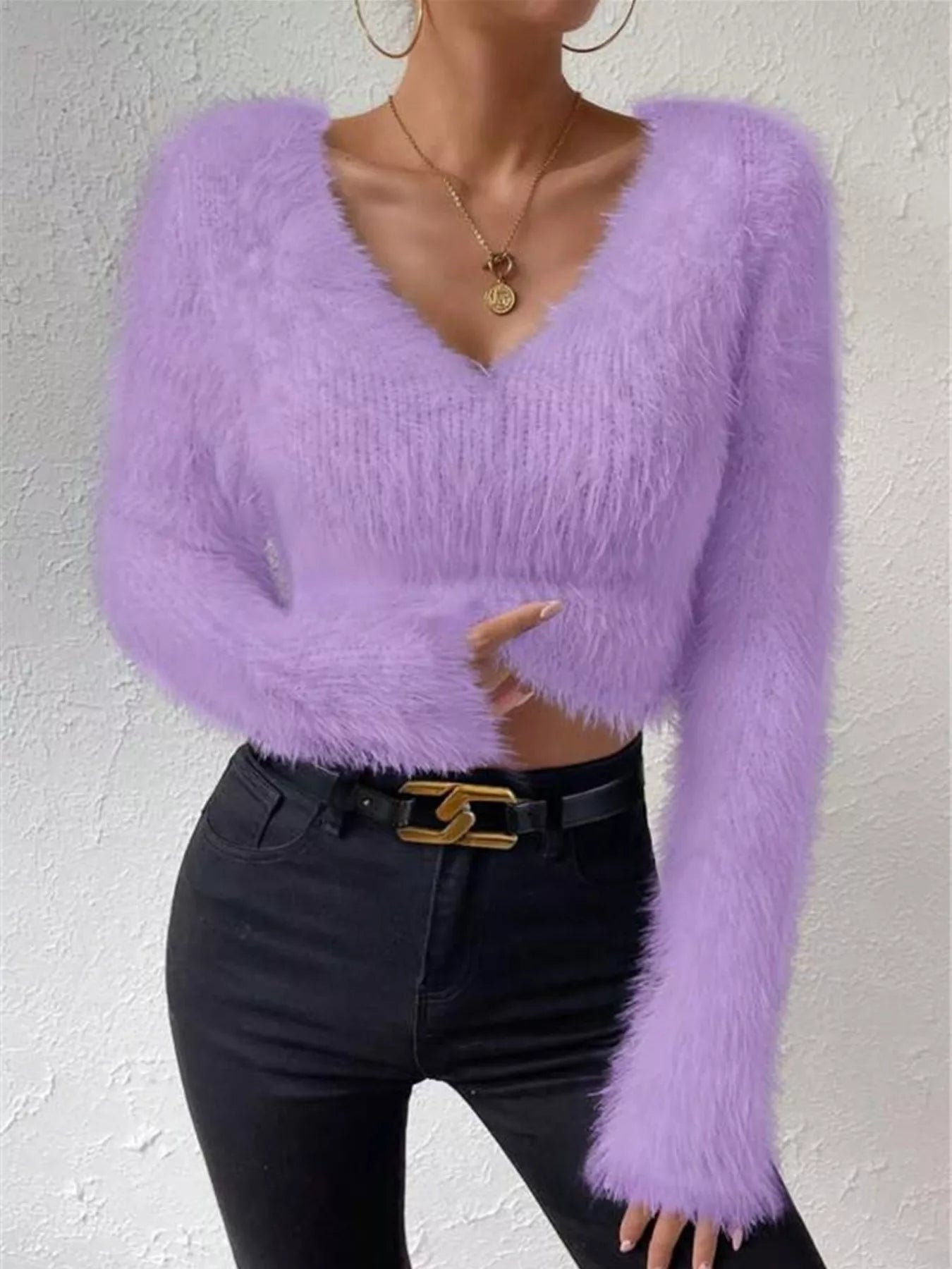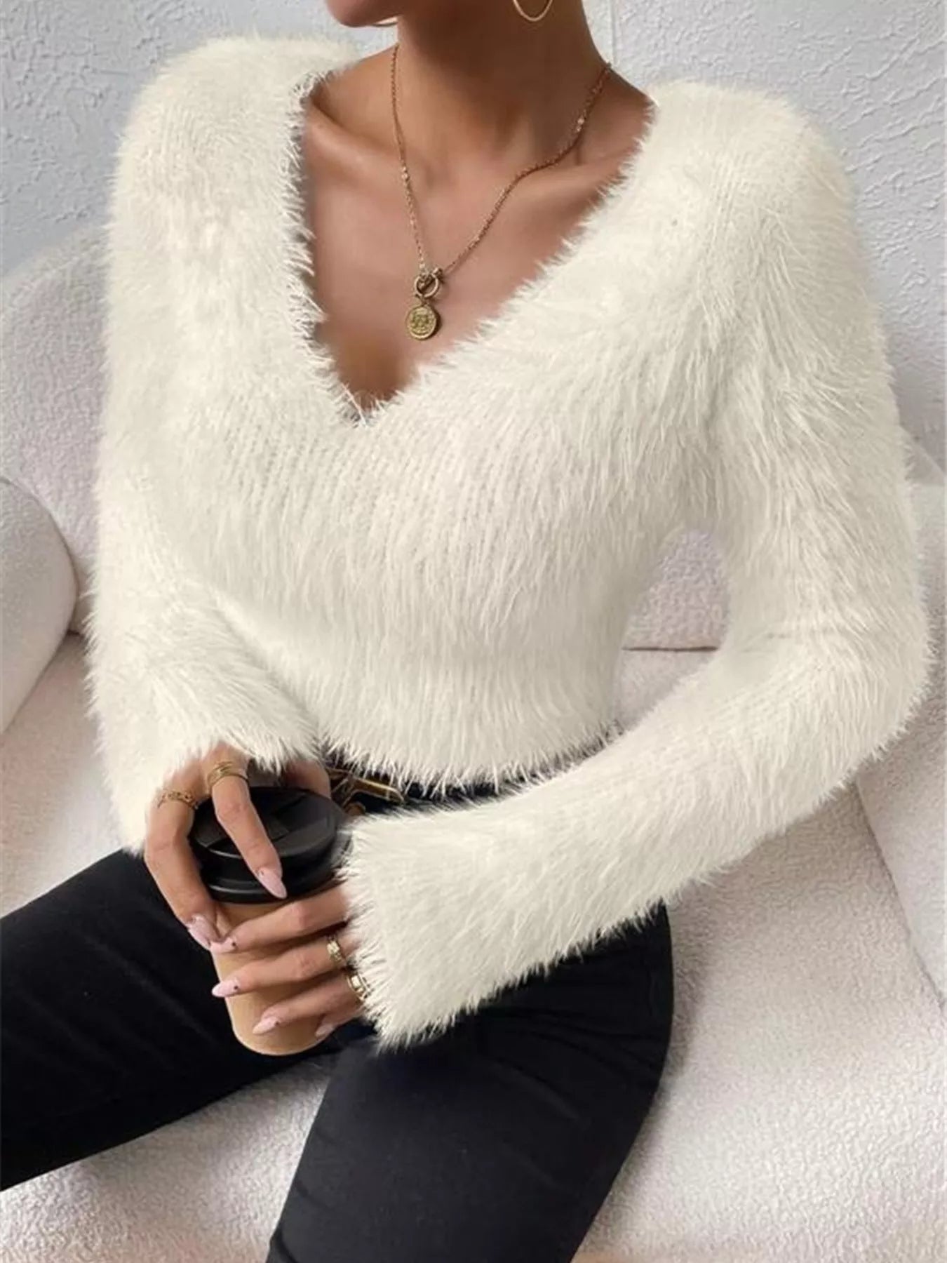 Fluffy knit V neck women sweater designed to feel soft, light, and quietly refined. The piece you reach for when you want comfort that still looks intentional.