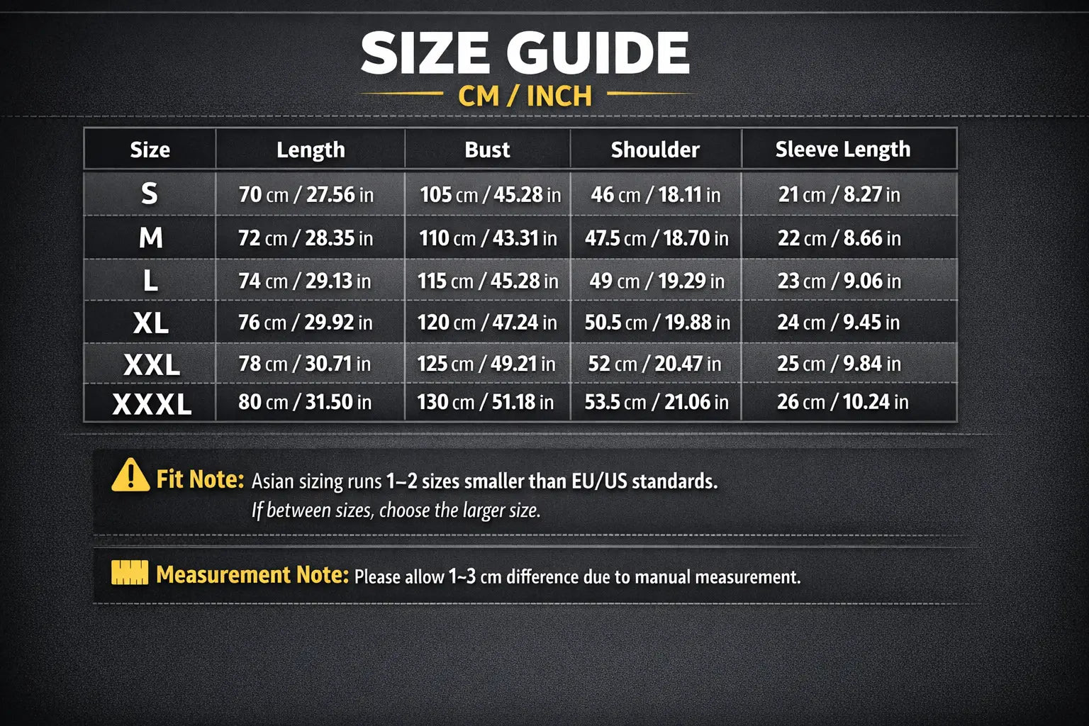 Choose your size carefully. Asian sizing runs smaller than European and American standards.