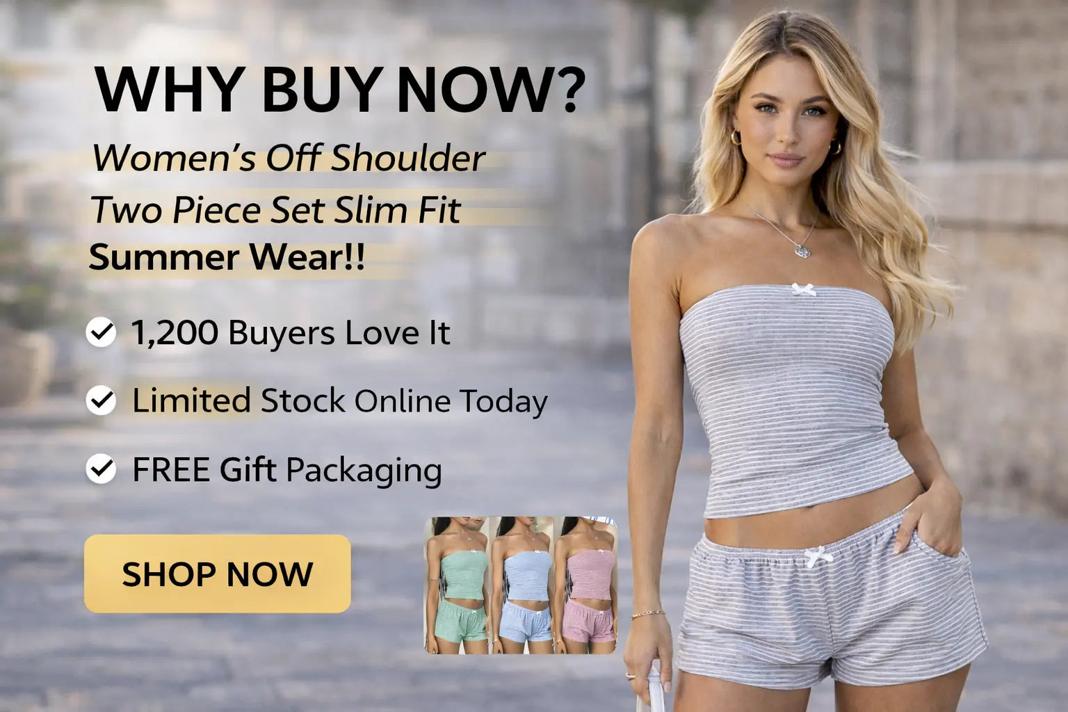 Women off shoulder two piece set designed to highlight your silhouette with effortless confidence. This is the refined answer to everyday summer dressing that looks intentional, polished, and undeniably attractive.