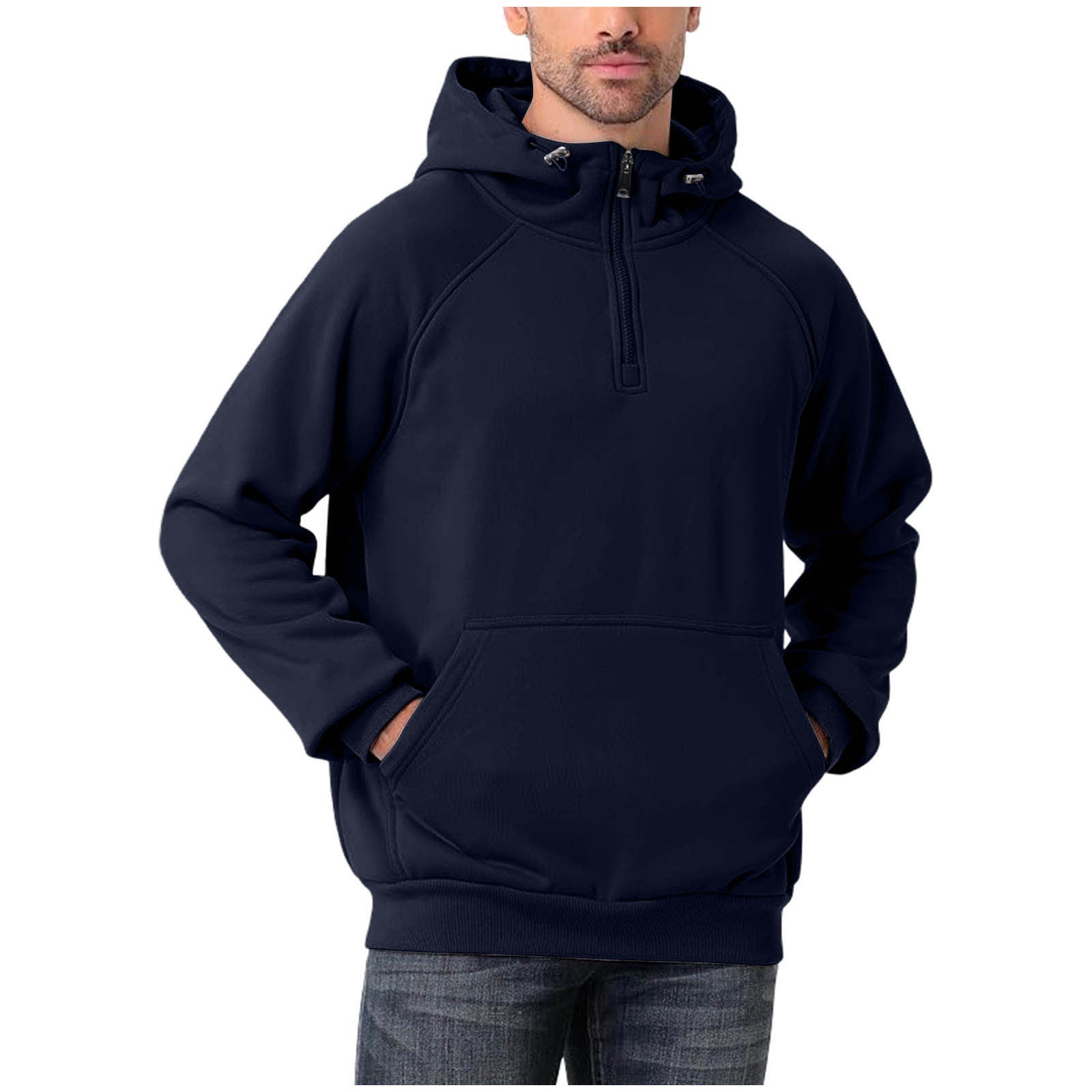 Casual men’s pullover hoodie with long sleeves and a modern half-zip neckline