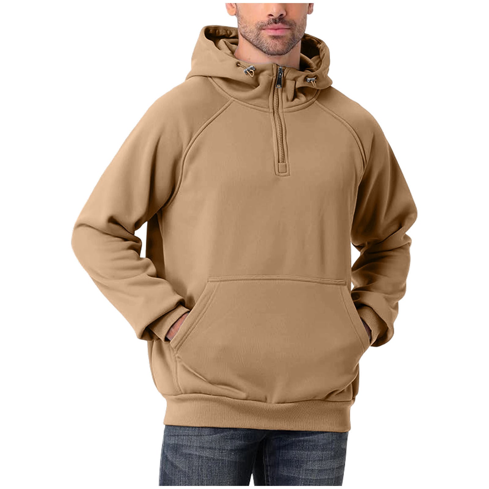 Men’s quarter zip hoodie styled for spring and autumn layering