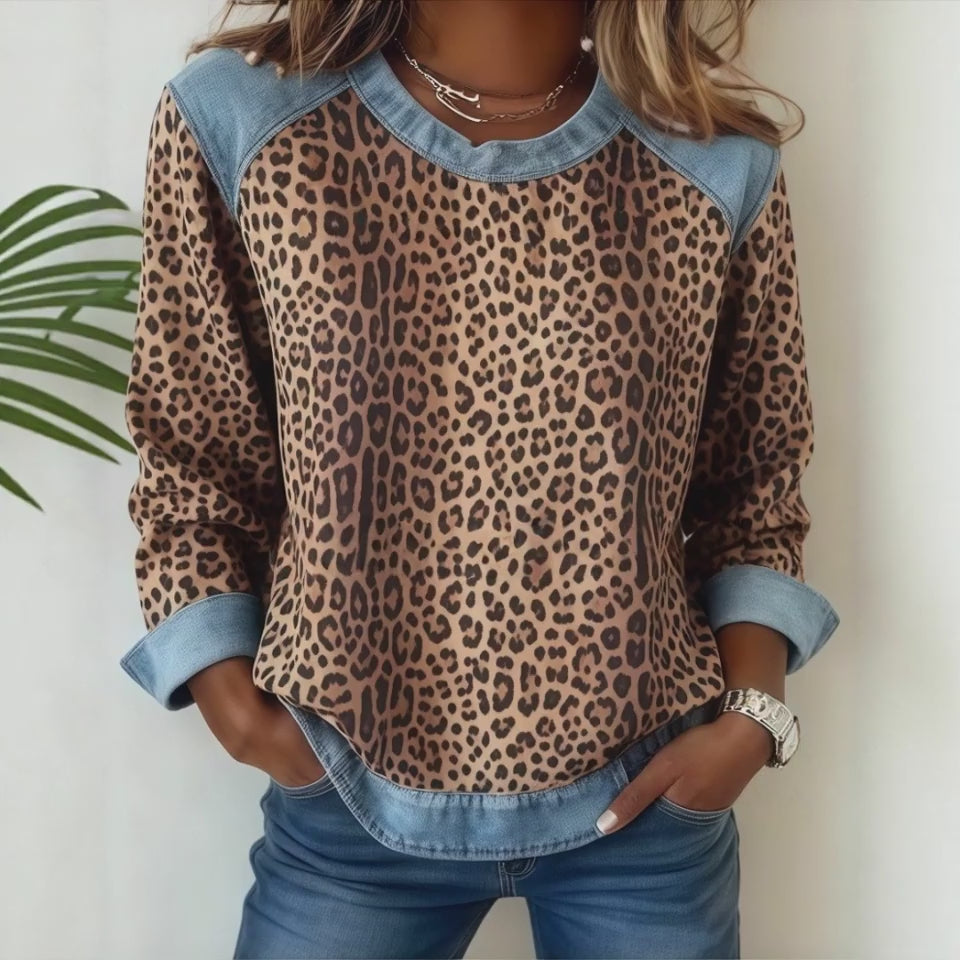 Denim patchwork sweatshirt women designed for effortless everyday confidence. A refined casual essential that looks intentional without trying.
