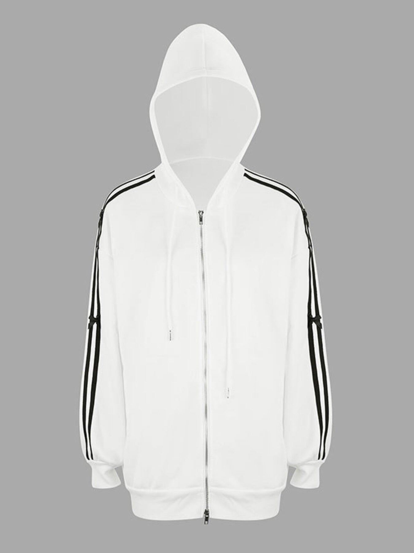 Women Striped Sleeve Zip Hoodie Casual Drawstring Style