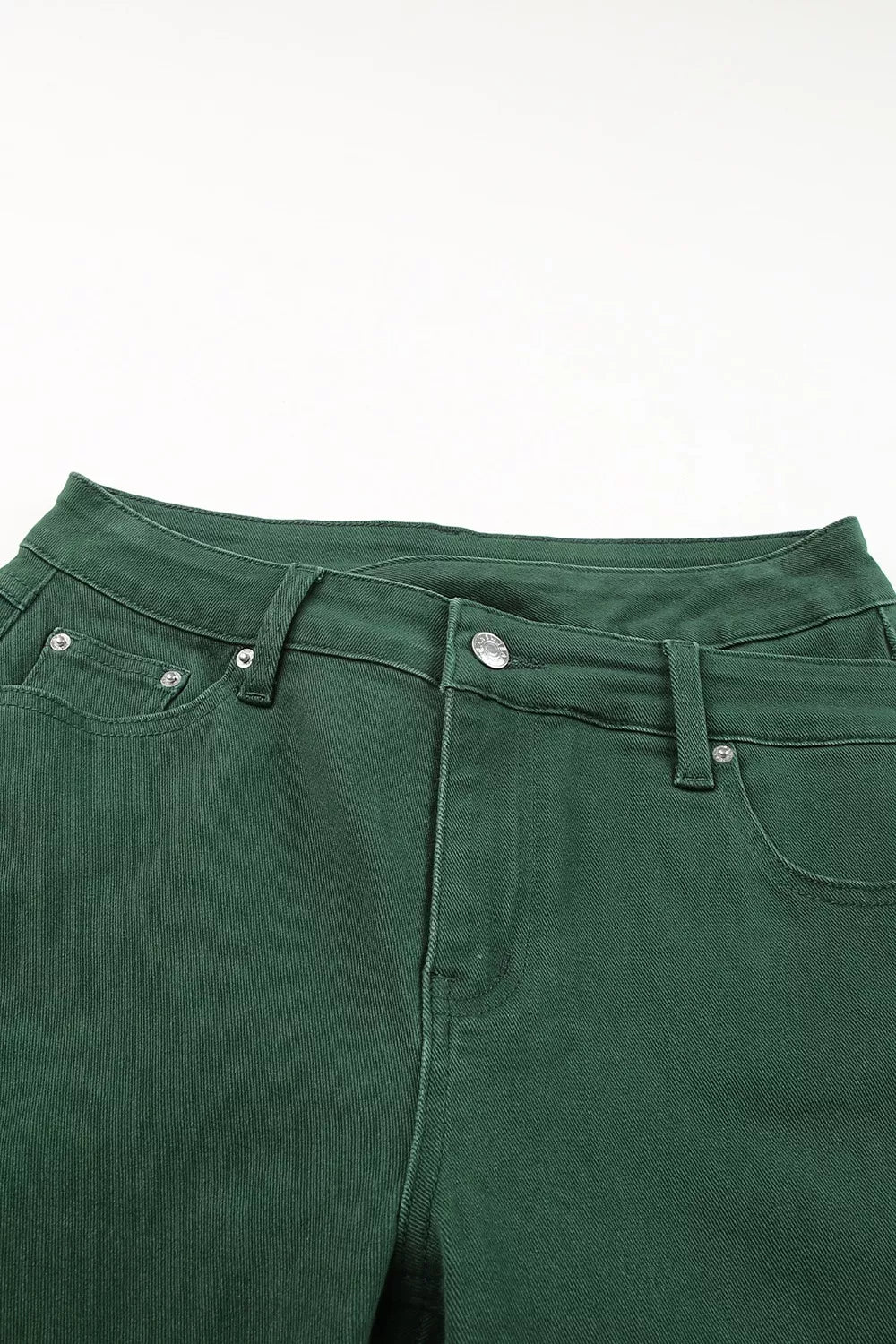Made from 98% cotton and 2% elastane, this pair has a structured feel with no-stretch wear and a clean drape. The pocketed design adds function, while the raw hem keeps the finish current. For sizing help, see our crossed-waist denim size guide, and for long-lasting wear, follow a trusted denim care guide. Machine wash cold and tumble dry low.