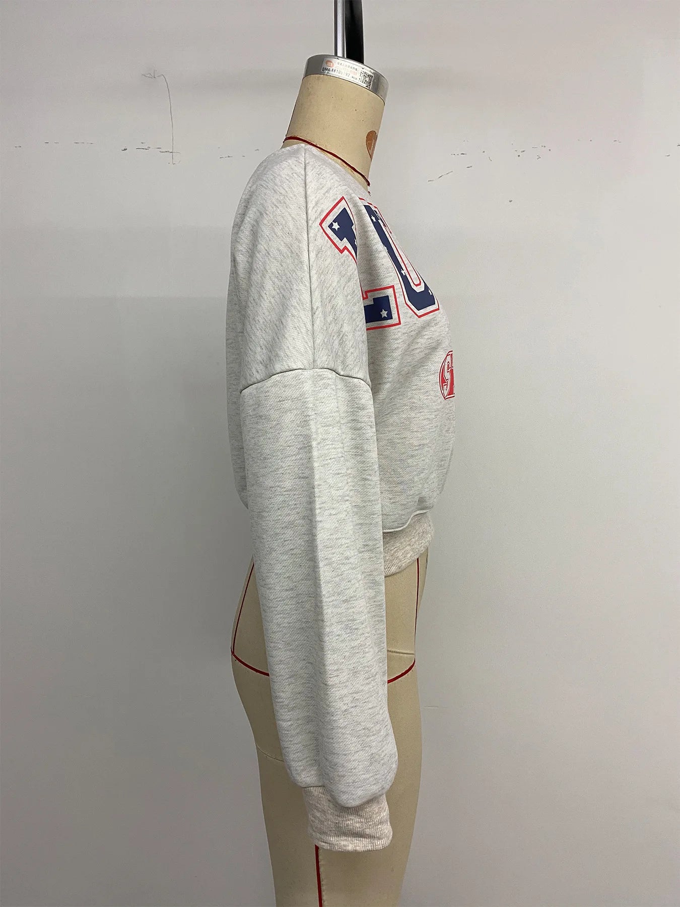 | Design | Off shoulder, letter print, cropped length, full sleeves |