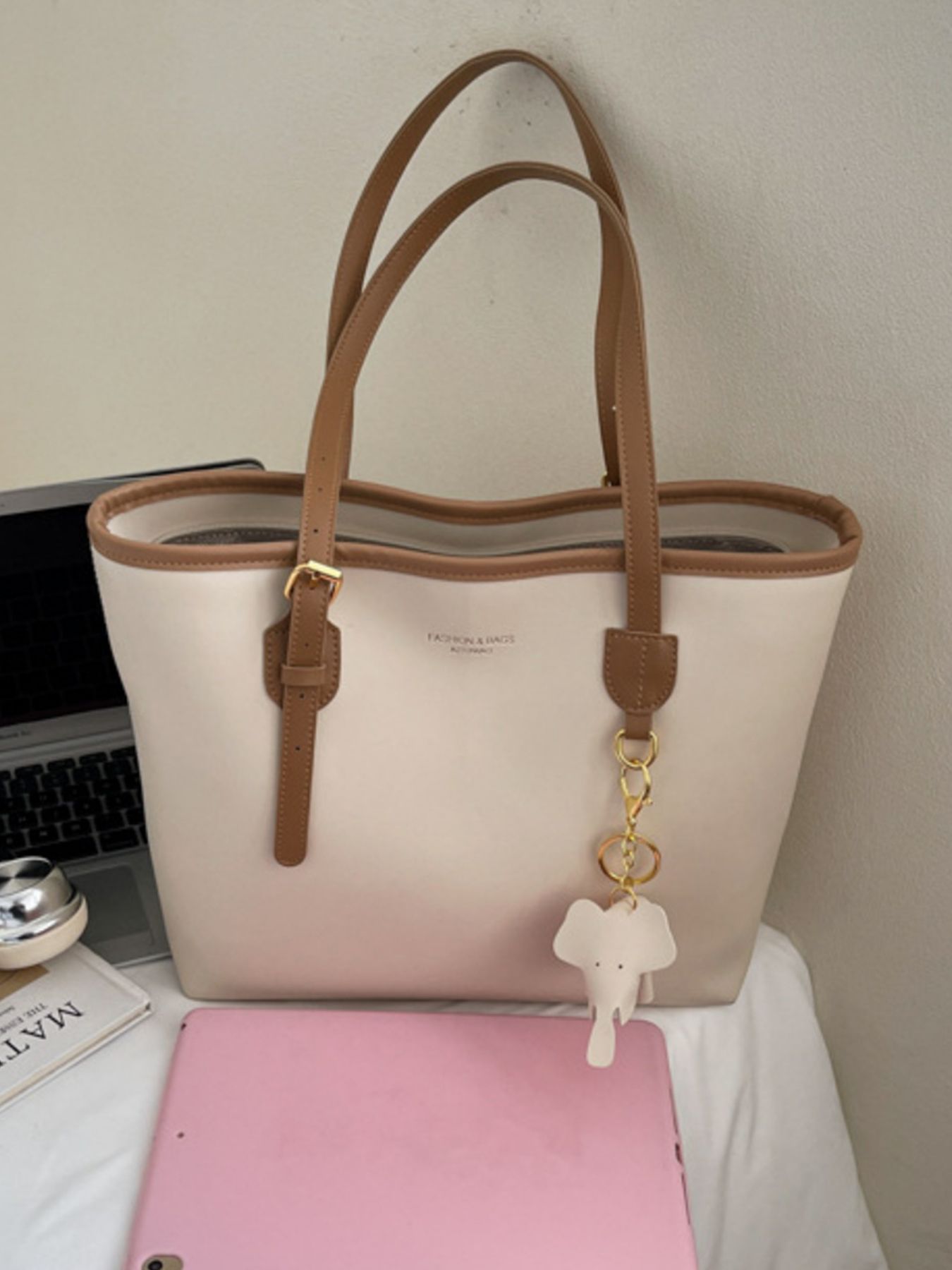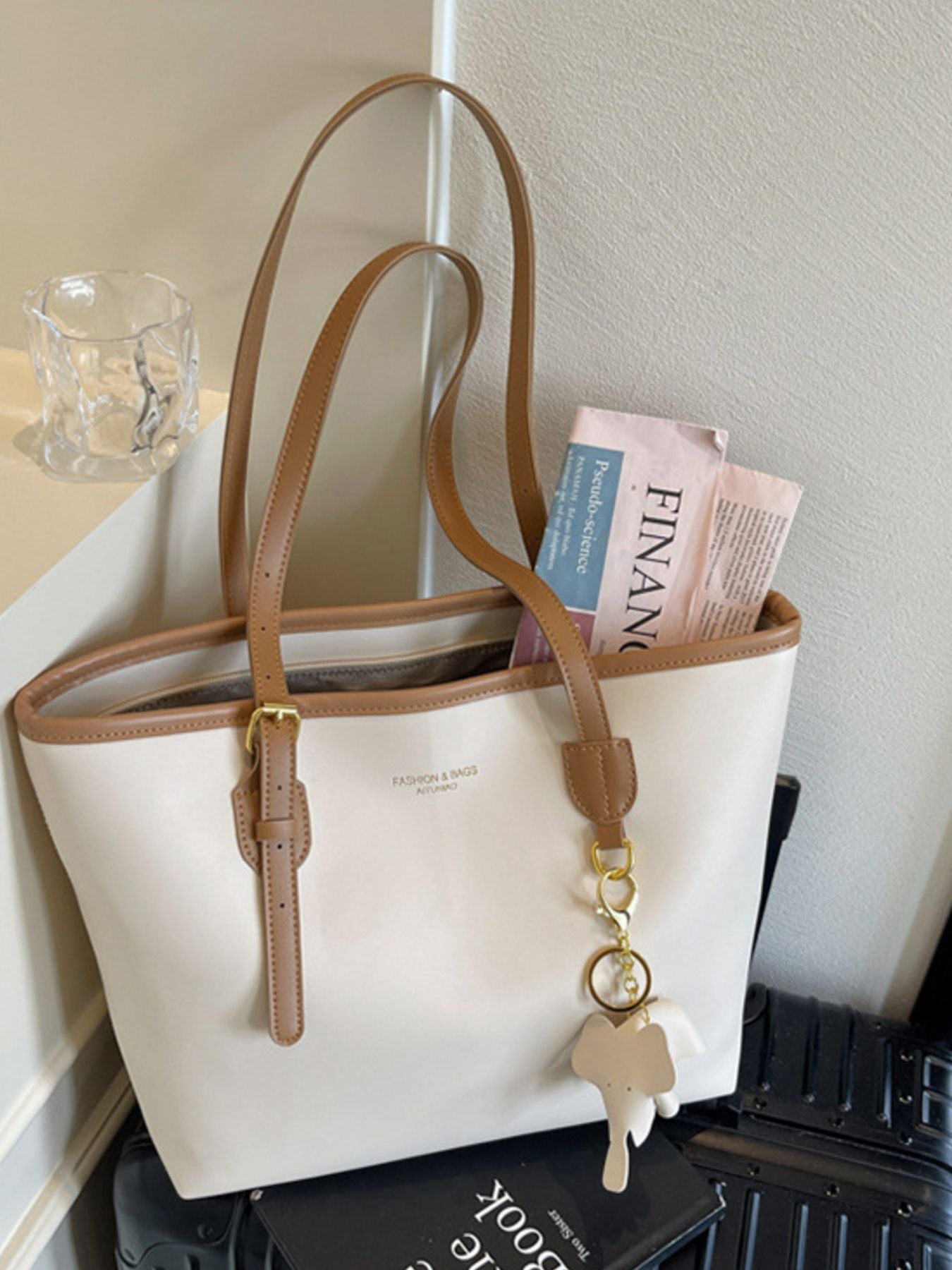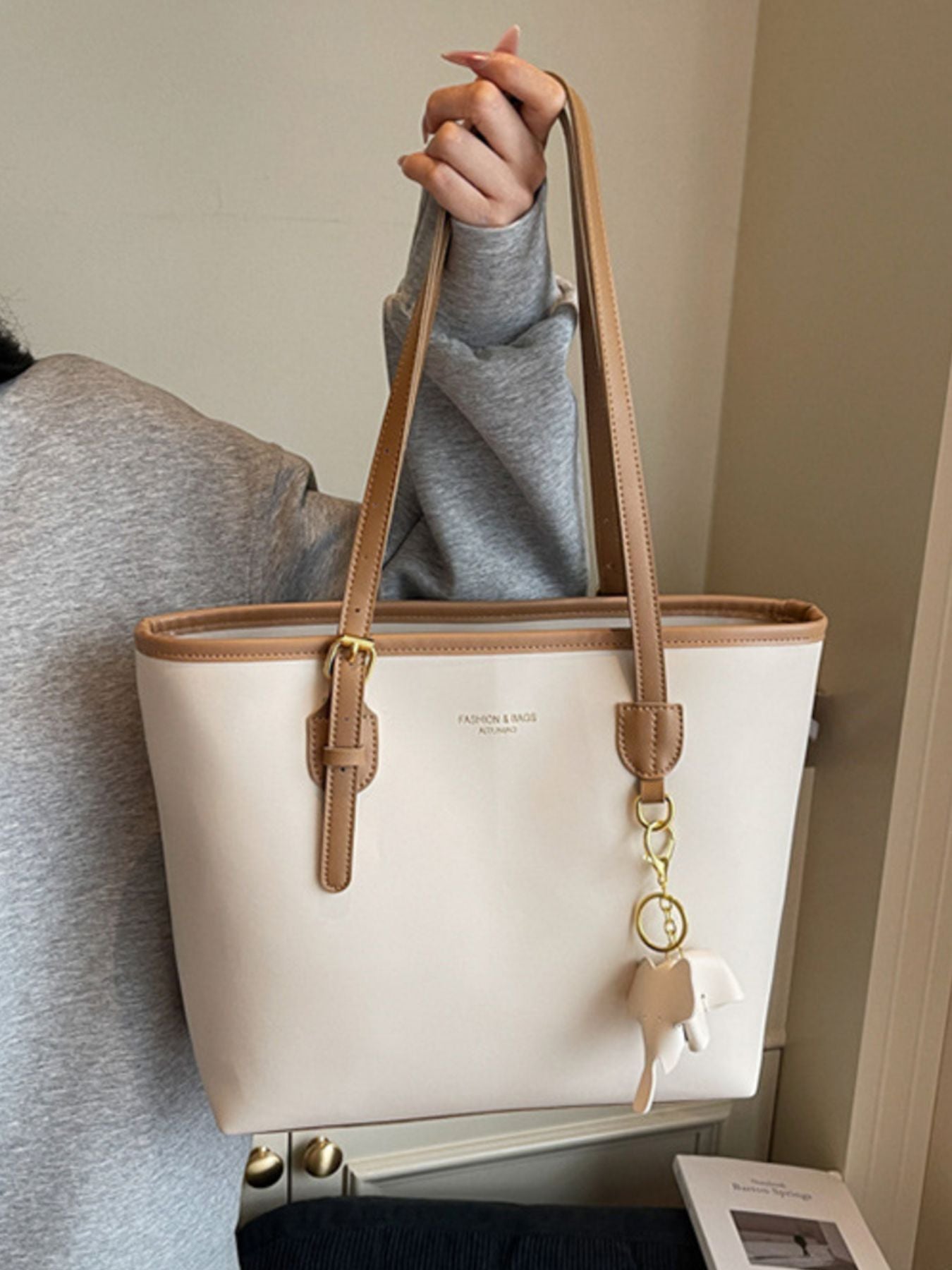 Dimensions: 14.2" (L) × 10.2" (H). One universal size - large enough to carry everything, compact enough to stay polished. Crafted in smooth PU leather with contrast panel detailing and clean stitching throughout. Interior is spacious and unfussy. For care tips, refer to our contrast leather shoulder bag styling guide - or follow expert advice from  how to care for faux leather handbags. Wipe clean with a damp cloth. Avoid prolonged sun exposure to maintain colour richness.