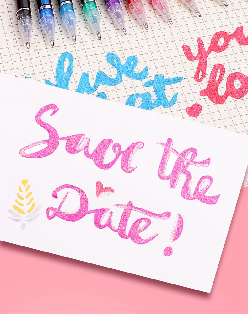 Metallic glitter gel pens with neon pastel inks for sketching and art