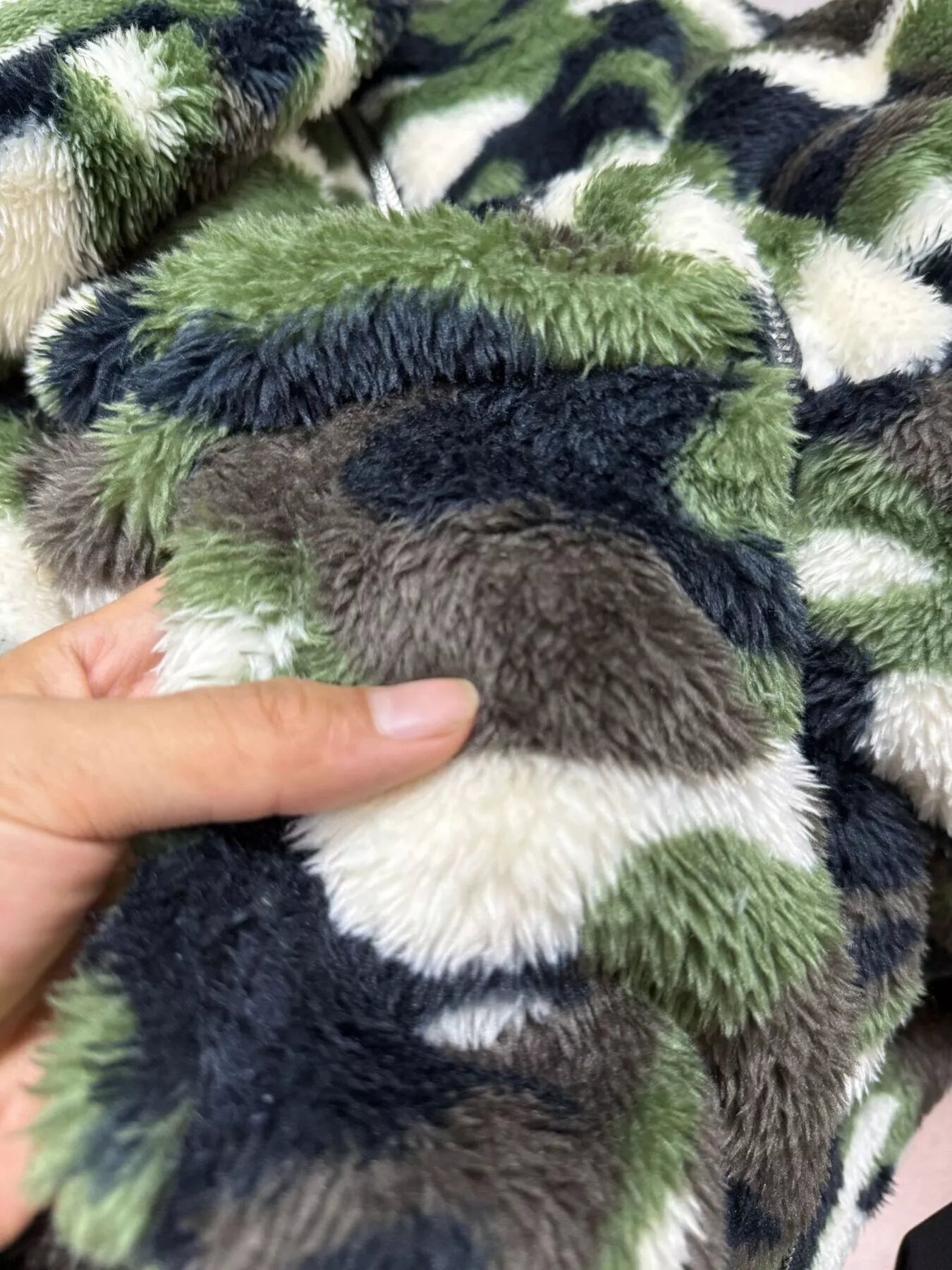 Made from 100% polyester, this fuzzy camo style feels like a wearable blanket but still looks street ready. The full zip front makes layering easy, while the hood and pockets keep hands and ears protected on chilly school runs, coffee walks, or game nights.
